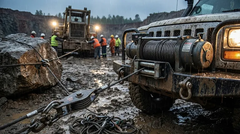 무거운 짐이 묶여 있습니다. 차량이 움직이지 않습니다. 해결책은 간단해 보입니다. 윈치입니다. 기계적 이점의 원초적인 표현입니다. 모터, 드럼, 케이블, 그리고 엄청난 견인력입니다.