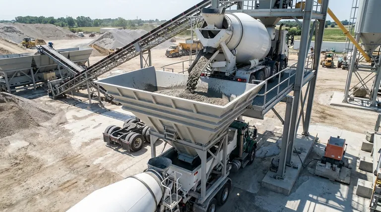 이 시스템은 믹서와 적재 영역을 완전히 분리합니다. 믹서는 여러 배치를 연속적으로 생산하여 호퍼에 저장할 수 있습니다. 이는 연속 타설이 필요한 대량 프로젝트에 이상적인 여러 트럭을 신속하게 채울 수 있는 준비된 공급원을 만듭니다.