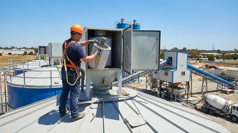 집진기는 사일로의 공기 관리 시스템의 핵심입니다. 주요 역할은 채우는 동안 시멘트 먼지를 포집하면서 공기가 빠져나가도록 하고, 배출하는 동안 공기가 들어오도록 하는 것입니다.