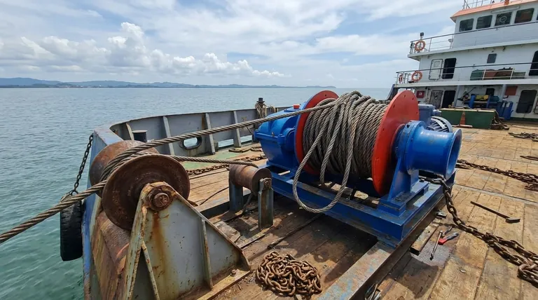 요약하자면, 윈치 설정에는 세 가지 근본적인 결함이 있습니다. 앵커 로프가 거의 90도 각도로 구부러지고, 롤러와 윈치 사이의 거리가 짧아 로프가 제대로 감기지 않으며, 중간 롤러가 이러한 문제를 더욱 악화시키고 있습니다.